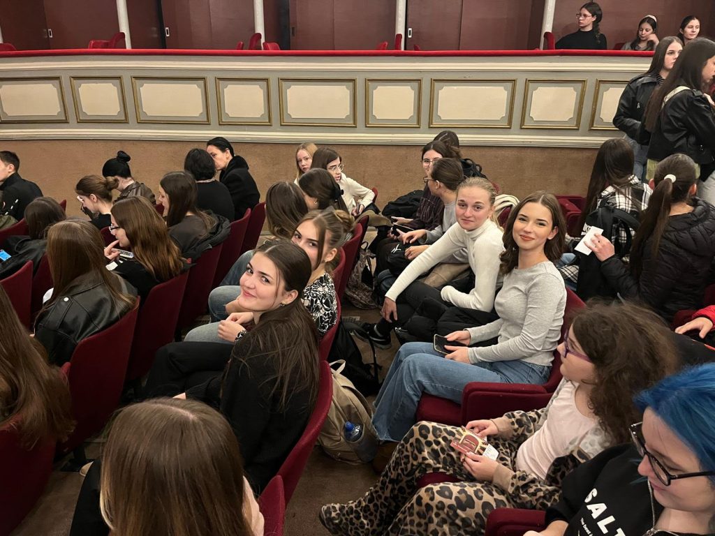 У оквиру предмета Појединац, група и друштво и Методологија научног рада, ученици Зрењанинске гимназије присуствовали су позоришној представи „Госпођа Министарка“ Бранислава Нушића, заједно са ученицима других средњих школа из Зрењанина.