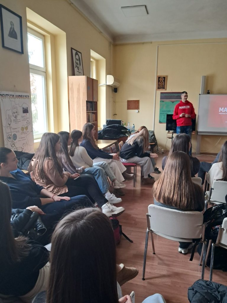 У организацији Удружења грађана за борбу против наркоманије „Марита“ из Новог Сада , за све  ученике првог разреда Зрењанинске гимназије, 2. и 3. марта одржана су интерактивна предавања на тему превенције наркоманије „Престани пре него што почнеш“.