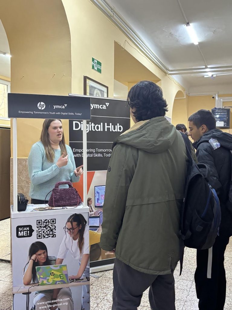 Наша школа је у среду, 26. новембра угостила представнице организације YMCA Serbia, које су ученицима представиле како им програм HP Life може помоћи у учењу, планирању каријере и развоју нових вештина. YMCA Serbia, светска организација за младе са канцеларијом у Србији реализује свој програм у партнерству са HP-oм. Реч је о информативно-менторској иницијативи намењеној средњошколцима, која промовише дигиталне вештине, каријерну орјентацију, безбедну и одговорну употребу технологије, вршњачку подршку и волонтирање.