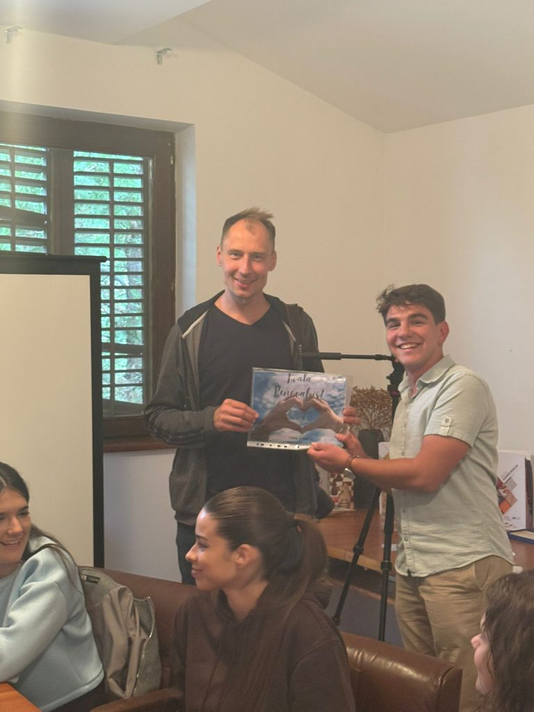 Поред Михајла као фацилитатора, учествовали су и ученици: Лука Грујић, Милица Даников, Миљана Ивковић и Искра Фењчев и заједно отворили чаробна врата креативности.