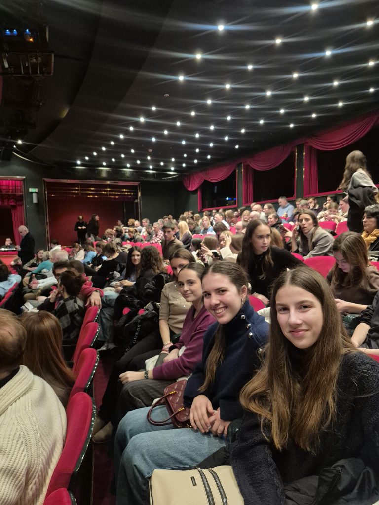 У Позоришту на Теразијама ученици су гледали мјузикл „Цигани лете у небо“, где су посматрали начин на који уметност рефлектује друштвене феномене и људска понашања. Повезујући посету музеју и мјузиклу, ученици су учили како се различити извори – историјски подаци и уметнички прикази – могу користити у истраживачком процесу, анализирајући чињенице и интерпретације из више перспектива.